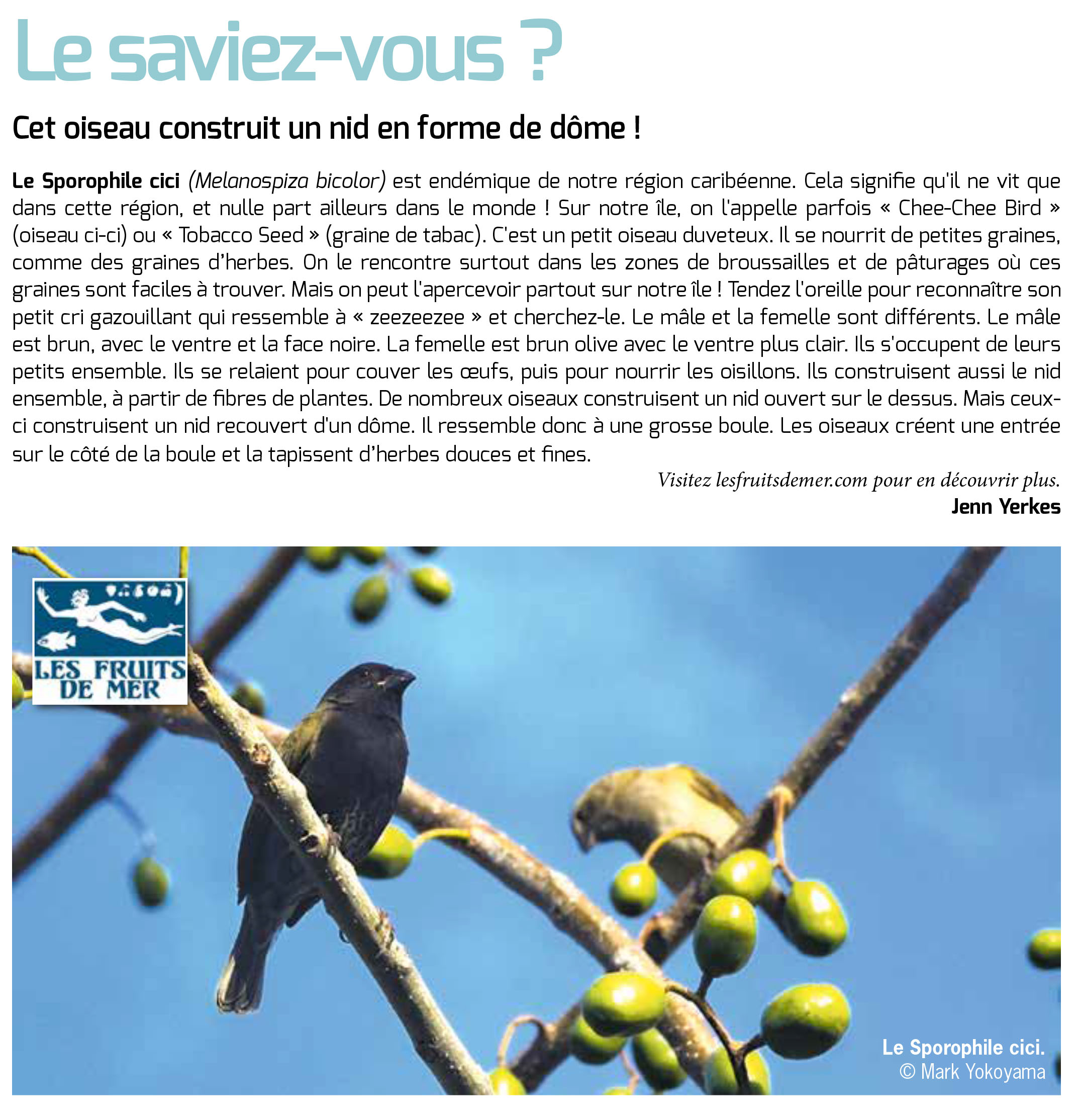 2026-03-20 LePelican Grassquit Donate to Les Fruits de Mer Or donate via PayPal or GlobalGiving. Subscribe to the Monthly Les Fruits de Mer Newsletter! * indicates required Email Address *Name /* real people should not fill this in and expect good things - do not remove this or risk form bot signups */